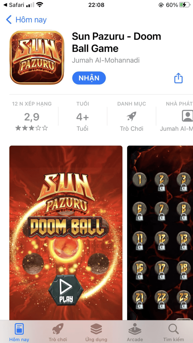 Bước 3: Sau khi bấm vào nút “Tải game ngay”, bạn sẽ được chuyển hướng sang giao diện App Store, tại đây bạn sẽ thấy ứng dụng hiển thị với tên “Sun Pazuru – Doom Ball game” thì cũng đừng lo lắng mình tải nhầm app nhé. Đây cũng là app của Sunwin nhưng nhà phát hành đã đổi tên để tránh trường hợp bị App Store xoá app.