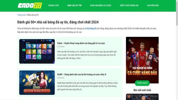Trang review nhà cái Cadobongda.blog là một nguồn thông tin tin cậy và hữu ích dành cho những ai quan tâm đến lĩnh vực cá cược trực tuyến. Đơn vị chuyên cung cấp các bài đánh giá chi tiết về các nhà cái hàng đầu hiện nay, giúp hội viên có cái nhìn tổng quan và chính xác trước khi quyết định tham gia. Những đánh giá này bao gồm thông tin về tỷ lệ cược, các chương trình khuyến mãi, dịch vụ khách hàng, và phương thức thanh toán của từng địa chỉ xanh chín.