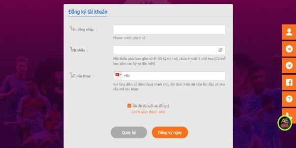Lưu ý quan trọng khi tiến hành đăng ký Ae888