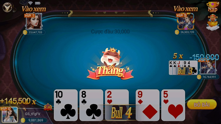 Người chơi sẽ thực hiện mỗi vòng cược theo như quy định đã đề cập ở trên. Người chơi có ván bài lớn nhất trong cuộc chơi hay là người chỉ cần ván bài khi mọi người đã thua sẽ thắng hết số cược của ván bài đó.