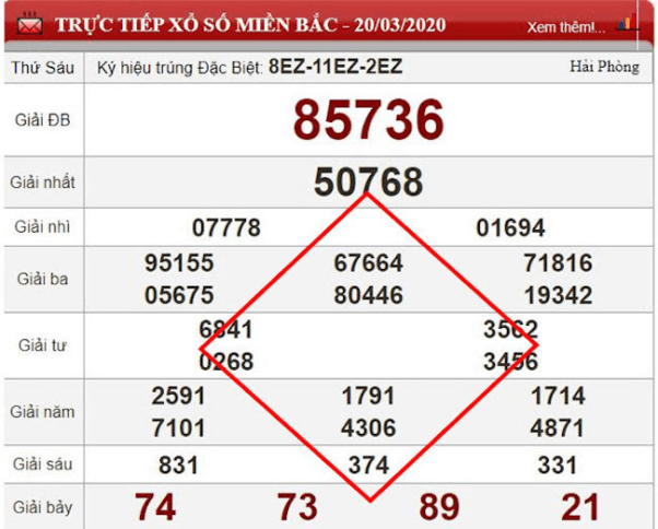 Áp dụng công thức trên, khi nhìn vào giải ba của bảng kết quả có sự xuất hiện của những con số như sau: