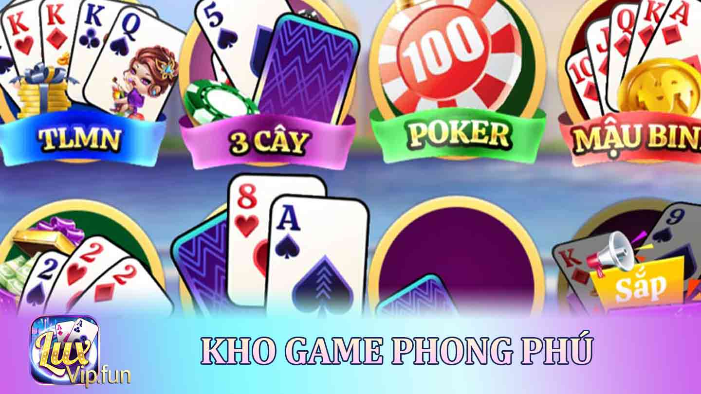 Với sự hỗ trợ từ các đối tác phần mềm nổi tiếng, Luxvip mang đến cho bạn một loạt các trò chơi đa dạng, từ poker, baccarat đến slot và nhiều trò chơi khác nữa. Bạn sẽ luôn tìm thấy điều gì đó phù hợp với sở thích và kỹ năng của mình.