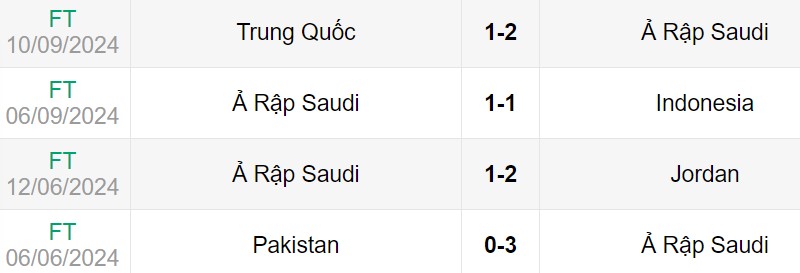 Phong độ gần đây của Ả Rập Xê Út vs Nhật Bản