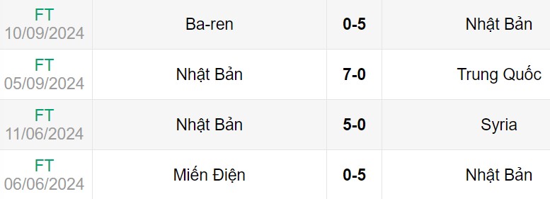- Nhật Bản đã ghi ít nhất một bàn thắng trong 25 trận liên tiếp.