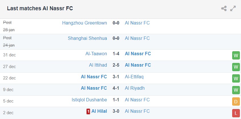 Phong độ gần đây của Al-Nassr vs Inter Miami