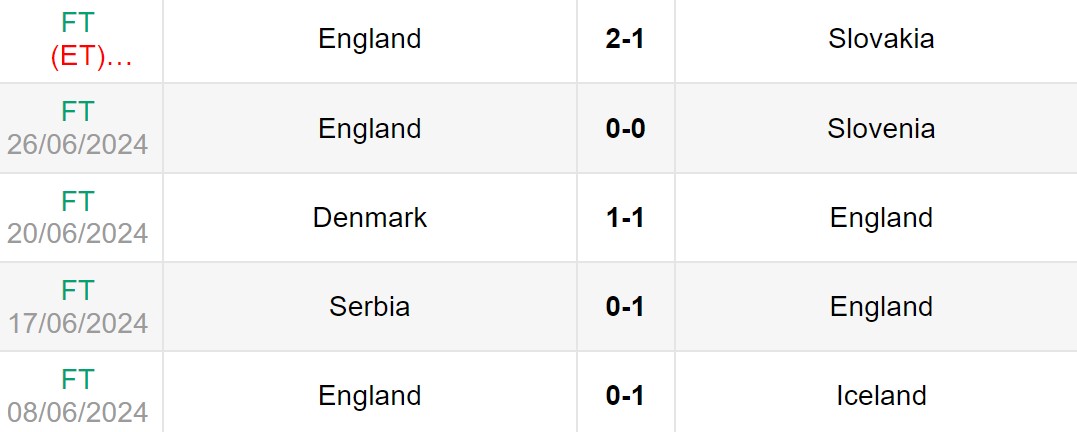 Phong độ gần đây của Anh vs Thụy Sĩ