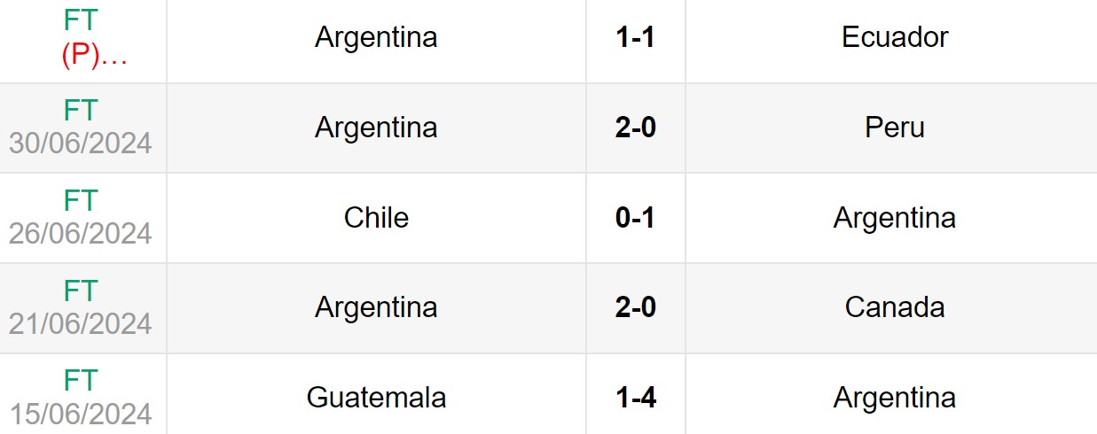 Một thành tích đáng chú ý khác là La Albiceleste (Những chú Bạc) chưa từng thua trong thời gian thi đấu chính thức của một giải đấu lớn trên đất Mỹ kể từ thất bại 2-3 trước Romania ở vòng 16 World Cup 1994. Nếu tiếp tục giữ vững phong độ, Argentina có thể nâng chuỗi bất bại lên 10 trận đấu trên tất cả các mặt trận vào thứ Ba, chỉ để thủng lưới 3 bàn trong chuỗi trận đó.