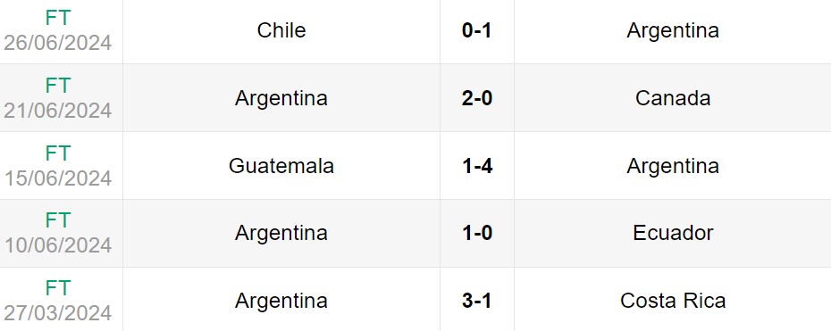 Với vị trí số 1 trên bảng xếp hạng FIFA, Argentina chỉ để thua 2 trong 59 trận quốc tế gần nhất, tính từ mùa hè năm 2019. Thất bại gần đây nhất của họ là trước Uruguay ở vòng loại World Cup 2026 hồi tháng 11 năm ngoái. Kể từ đó, Argentina đã toàn thắng 7 trận đấu chính thức với tổng tỷ số 15-2. Thêm vào đó, họ bất bại trước Peru trong 16 lần gặp gỡ gần nhất, khiến Argentina tràn đầy tự tin cho trận đấu sắp tới.