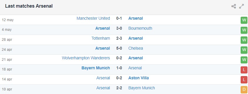 Phong độ gần đây của Arsenal vs Everton