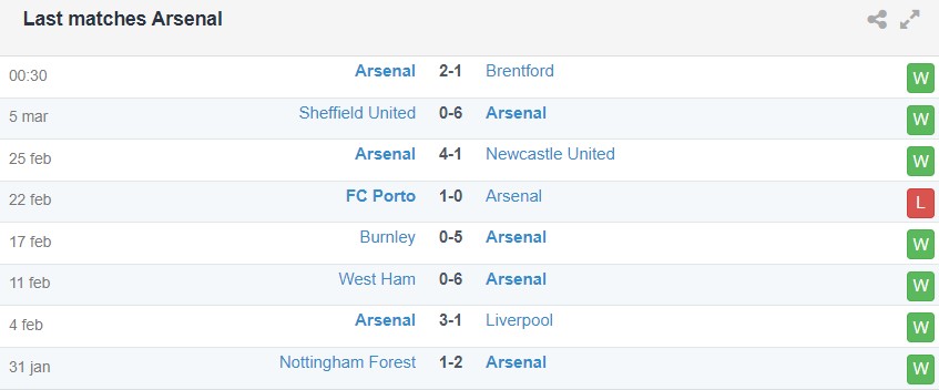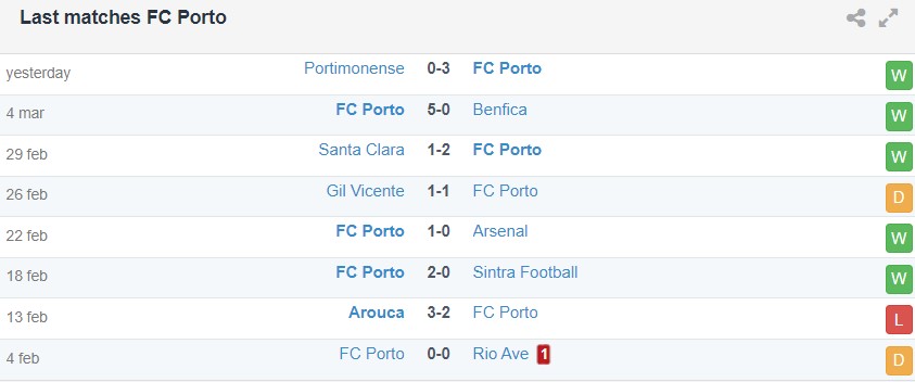 Ngoài việc không được lịch sử ủng hộ, phong độ của Porto cũng khiến Arsenal dự kiến khó có một trận đấu dễ thở khi đại diện Bồ Đào Nha đang có chuỗi bất bại 7 trận gần nhất, trong đó có tới 6 chiến thắng. Bên cạnh đó, thành tích vào tứ kết 2/4 mùa gần nhất, trong đó 2 mùa còn lại, 1 dừng chân ở bảng tử thần mùa 2021/22 với các đối thủ Atlético Madrid, Liverpool, Milan và 1 thua trước ĐK á Quân Inter ở mùa trước cũng chứng tỏ bản lĩnh của Dragões ở đấu trường này là không thể xem nhẹ.