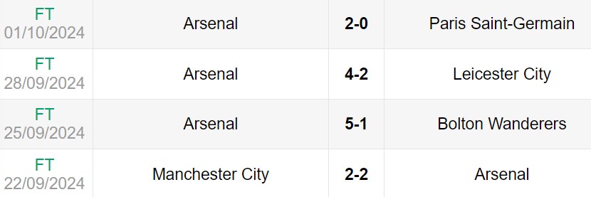- Trong 51 lần gặp nhau gần nhất, Arsenal thắng 26, hòa 15 và thua 10 với hiệu số bàn thắng bại là 92-50.