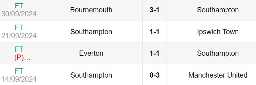 - Southampton đã để thủng lưới 1 bàn trong 8 trận gần đây nhất.