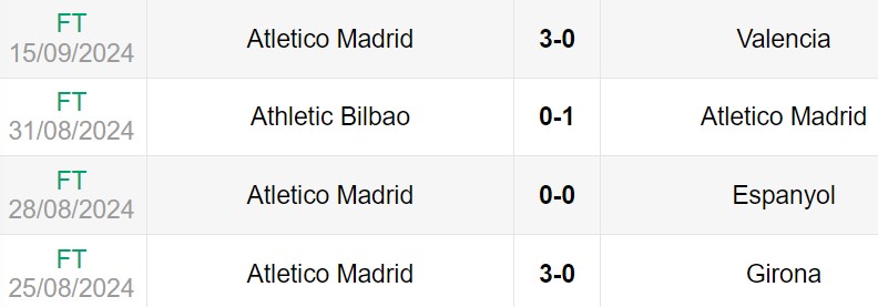 - Atletico đã không thua trong 9 trận gần đây nhất.