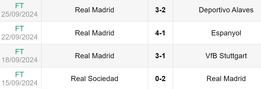 Đội bóng của HLV Carlo Ancelotti cũng đang trải qua chuỗi năm chiến thắng liên tiếp trên mọi đấu trường, bao gồm chiến thắng 3-1 trước Stuttgart trong trận mở màn Champions League tại Bernabeu. Trong nước, họ cũng đã đánh bại Espanyol và Alaves trên sân nhà ở hai trận gần nhất tại La Liga. Rõ ràng, dù thiếu vắng Mbappe, Real Madrid vẫn đang thể hiện sức mạnh tấn công rất đáng gờm.