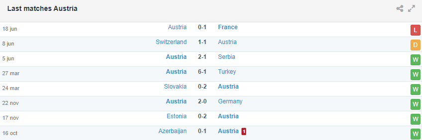 Cũng trong ngày ra quân, Áo đã không thể giành chiến thắng khi để thua Pháp 0-1. Đáng tiếc hơn, bàn thắng định đoạt trận đấu lại đến từ pha đá phản lưới nhà của Max Wober. Tuy nhiên, tinh thần quả cảm của các học trò Ralf Rangnick là điều đáng khen ngợi khi họ khiến nhà vô địch thế giới 2018 phải toát mồ hôi cho đến những phút cuối cùng.