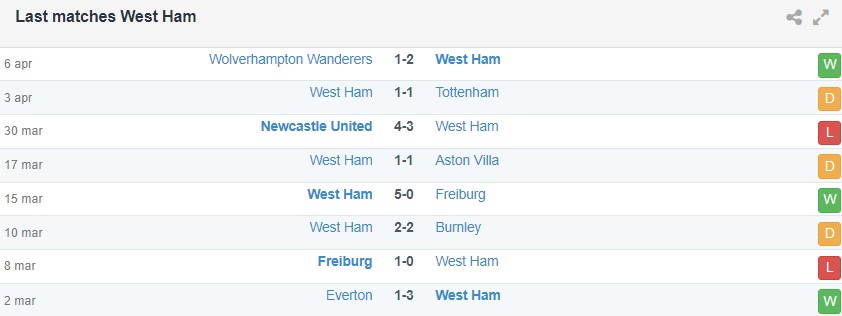 Ở phần sân đối diện, West Ham lại đang tỏ ra thiếu ổn định khi chỉ thắng 2/7 trận gần nhất, còn lại hòa 3 và thua 2. Đại diện thành London cũng có thành tích không tốt trên sân khách mùa này, bằng chứng là họ thua tới 11 trong toàn bộ 22 lần hành quân xa nhà trên mọi đấu trường kể từ tháng 8.