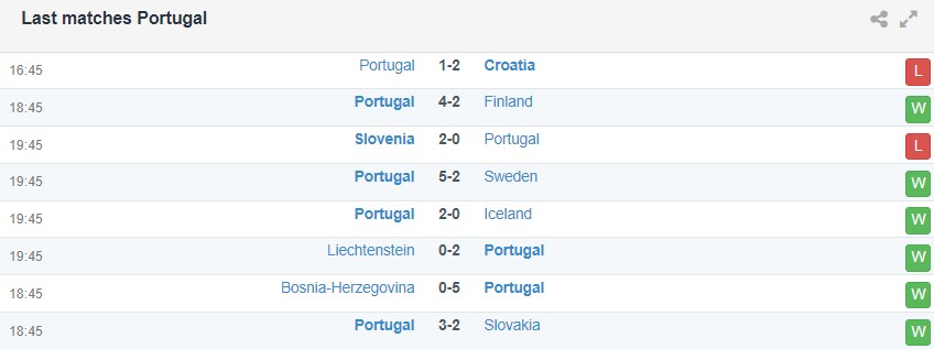 Đây cũng là sa sút thấy rõ của Bồ Đào Nha so với chiến dịch vòng loại Euro, nơi họ xếp đầu bảng với 10 trận thắng.