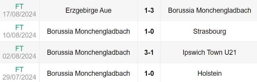 • Borussia Moenchengladbach đã thắng 4 trận liên tiếp gần nhất