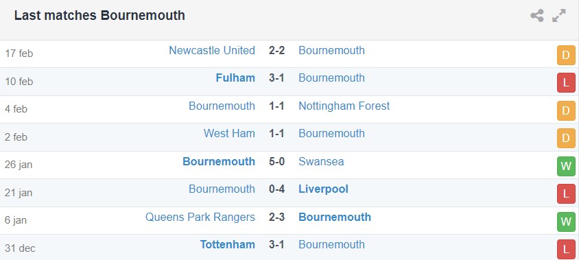 Trái ngược với một Bournemouth bùng nổ với những chiến thắng liên tiếp giai đoạn tháng 12, Bournemouth hiện tại đang cho thấy dấu hiệu hụt hơi khi đã không thắng 4 trận gần nhất, trong đó thua 1 và hòa 3. Tính rộng ra ở 8 trận vừa qua, The Cherries cũng chỉ thắng 2 và đều là ở FA CUP.
