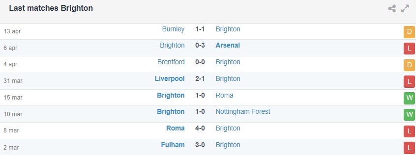 Phong độ gần đây của Brighton vs Man City