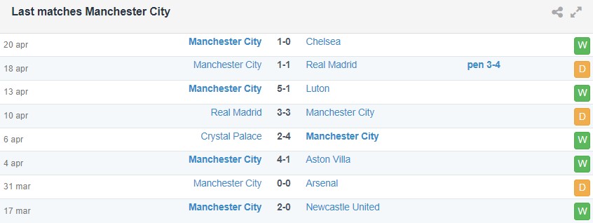 Với đà tâm lý tốt The Citizens được kỳ vọng sẽ đánh bại Brighton để tiếp tục giữ cách biệt 1 điểm với đội đầu bảng Arsenal trước khi có thể tự tay đòi vị trí này ở trận đấu bù với Tottenham vào ngày 15/5 tới.