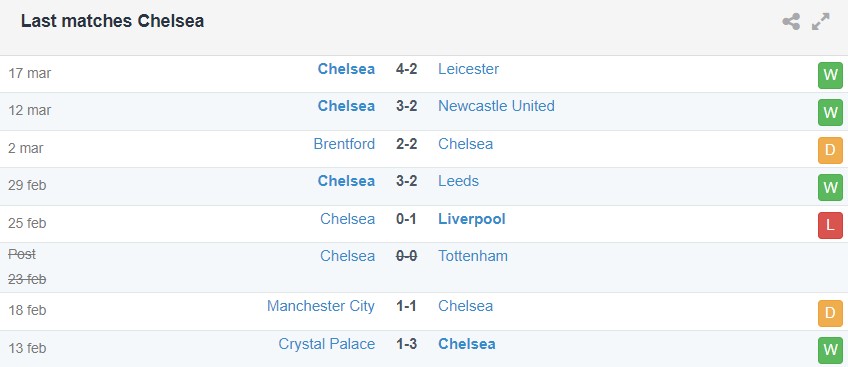 Trước khi nhường chỗ cho loạt trận ĐTQG, Chelsea có phong độ khá ổn khi bất bại trong 4 trận gần nhất trên mọi đấu trường. Xét riêng tại EPL, thầy trò Pochettino cũng đang giữ chuỗi 4 trận không thua. Trong đó, thắng lợi 3-2 trước Newcastle ở vòng 28 vừa qua tuy chưa thể giúp The Blues vươn lên nửa trên BXH khi vẫn dậm chân ở vị trí thứ 11 cùng 39 điểm, nhưng đã rút ngắn khoảng cách giữa họ với đội đủ điều kiện dự Conference League mùa sau là West Ham xuống còn 5 điểm cùng lợi thế 2 trận chưa đá.