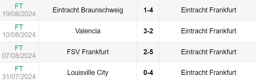 Frankfurt đã thắng 4-1 trước Eintracht Braunschweig ở vòng đầu tiên của DFB-Pokal. Các bàn thắng được ghi bởi Hugo Ekitike, Fares Chaibi và Igor Matanovic. Họ cũng đã ghi được 25 bàn trong 5 trận đấu trước mùa giải.