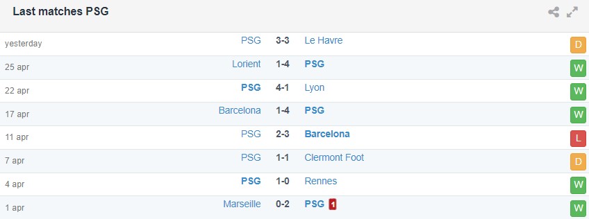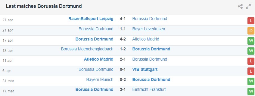 Phong độ gần đây của Dortmund vs PSG