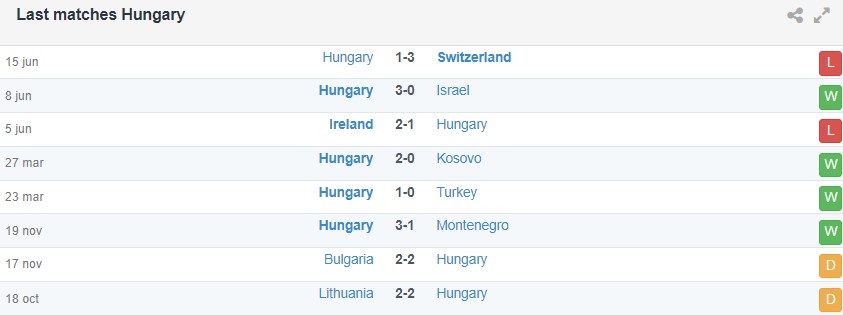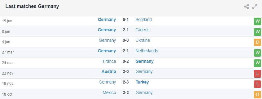 Phong độ gần đây của Đức vs Hungary