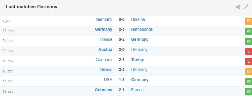 Bất chấp nỗi thất vọng khi bị Ukraine cầm hòa ở trận trước, Đức nhiều khả năng sẽ không tái lặp lại điều này khi với lợi thế sân nhà cùng dàn nhân sự chất lượng hơn thì 1 chiến thắng với cách biệt tối thiểu 2 bàn sẽ không phải là nhiệm vụ khó với họ.