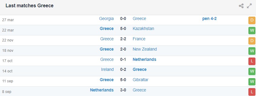 Về phía Hy Lạp, hậu vệ 36 tuổi Giorgos Tzavellas đã giã từ sự nghiệp thi đấu quốc tế, trong khi Kostas Tsimikas và cựu hậu vệ phải của Sheffield United, George Baldock đều không thể thi đấu vì chấn thương.