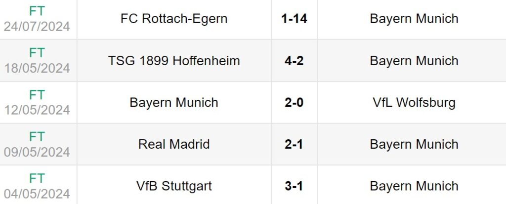 Để chuẩn bị cho mùa giải mới, Bayern đã có chiến thắng đậm 14-1 trước Rottach-Egern ở trận giao hữu đầu tiên. Họ còn 4 trận đấu nữa trước khi bước vào mùa giải chính thức, gặp Tottenham Hotspur 2 lần, WSG Tirol và Ulm.