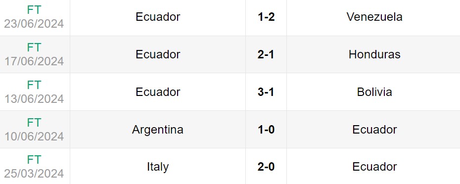 Phong độ gần đây của Ecuador vs Jamaica