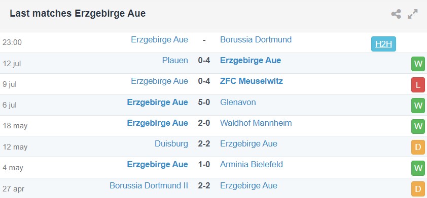 Phong độ gần đây của Erzgebirge Aue vs Dortmund