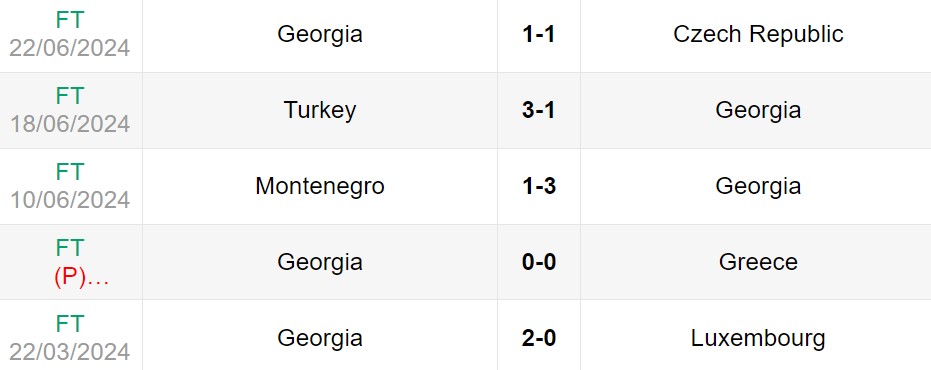 Phong độ gần đây của Georgia vs Bồ Đào Nha