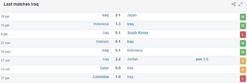 Iraq đã hoàn thành mục tiêu tiến vào vòng 16 đội của giải đấu. Dù vậy không có lý do gì để họ không kết thúc vòng bảng với 3 trận toàn thắng. Vì thế, đây sẽ bài toán rất khó nhằn cho đội tuyển Việt Nam. Tuy nhiên, với việc chúng ta sẽ đặt quyết tâm cao đầu rời giải, cộng với việc nếu đứng đầu bảng thì nhiều khả năng Iraq sẽ gặp đối thủ cực mạnh là Hàn Quốc.
