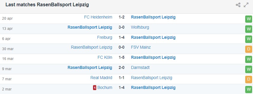 Dù vậy, mục tiêu này sẽ không dễ để đạt được bởi Leipzig đang có phong độ khá cao khi đã toàn thắng 3 vòng đấu gần nhất. Tính rộng ra, đoàn quân của Marco Rose bất bại tới 8 trận vừa qua trên mọi đấu trường và chỉ hòa 2 trong số này. Bên cạnh đó, Die Roten Bullen cũng sở hữu thành tích tốt trên sân nhà ở Bundesliga mùa giải năm nay khi kiếm tới 33/45 điểm tối đa sau 15 trận.