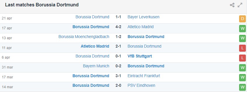 Thống kê này sẽ càng làm cho Dortmund thêm lo khi họ chưa thắng ở 3 trận gần nhất hành quân đến Red Bull Arena. Dù vậy, việc mới chỉ thua 1 sau 15 trận làm khách ở hạng đấu cao nhất nước Đức kể từ đầu mùa cũng sẽ là động lực giúp đại diện vùng Ruhr thêm tự tin để phá dớp đáng buồn này.