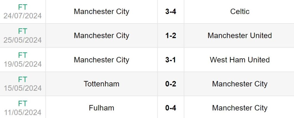 Phong độ gần đây của Man City vs AC Milan