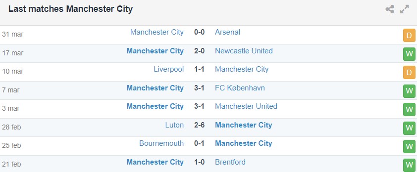 Phong độ gần đây của Man City vs Aston Villa