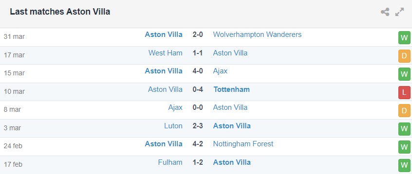 Về phía Aston Villa, đoàn quân Emery không còn đạt được sự hưng phấn như giai đoạn giữa mùa khi chỉ thắng 2, hòa 2 và thua 1 ở 5 trận gần nhất trên mọi đấu trường. Dù vậy, trong bối cảnh tấm vé dự Champions League của mình bị đe dọa bởi Tottenham, đội chỉ cách chính họ 3 điểm nhưng đá ít hơn 1 trận có thể sẽ khiến Villa chơi cẩn trọng hơn trong chuyến làm khách đến Manchester lần này.
