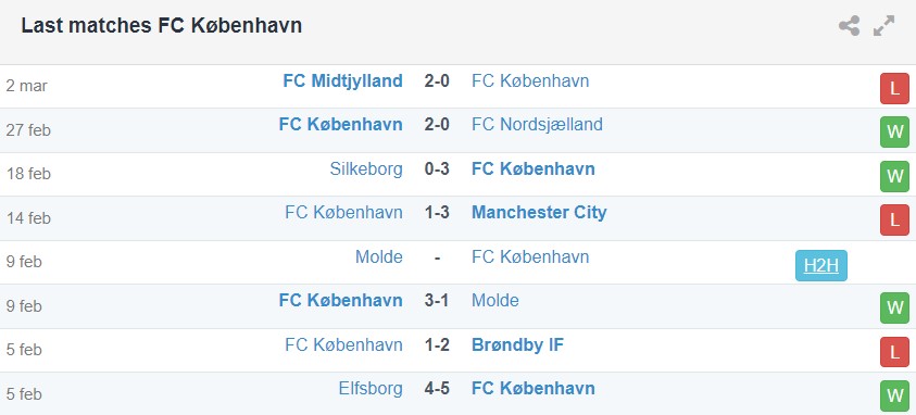 Ở phần sân đối diện, Copenhagen trái ngược hoàn toàn khi thể hiện bộ mặt tương đối bất ổn với thành tích thắng 4 thua 3 trong 7 trận chính thức trên mọi đấu trường kể từ đầu năm 2024. Thầy trò Jacob Neestrup cũng chưa từng thắng trước đại diện nước Anh ở 5 trận đối đầu giữa đôi bên, trong đó lần gần nhất hành quân đến Etihad vào tháng 10 năm 2022 họ còn bị đội chủ nhà ‘vùi dập’ tới 5 bàn không gỡ.
