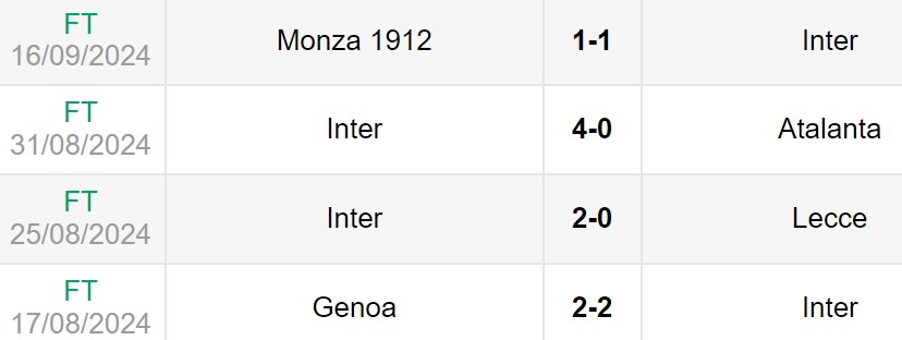 - Inter không thua trận nào trong 5 trận sân khách gần nhất.
