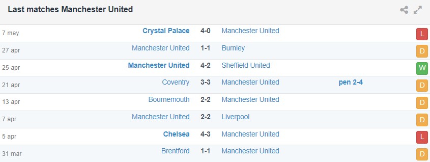 Chưa biết có thể đánh bại Man City để mang về phòng truyền thống danh hiệu FA Cup vào ngày 25/5 tới hay không, song có thể nói rằng mùa giải tính tới thời điểm này của Man Utd thật sự vô cùng đáng thất vọng khi có những trận thua cực kỳ xấu hổ, một trong số đó là thảm bại 0-4 trước Palace trên sân Selhurst Park ở vòng 36 EPL tuần vừa qua.