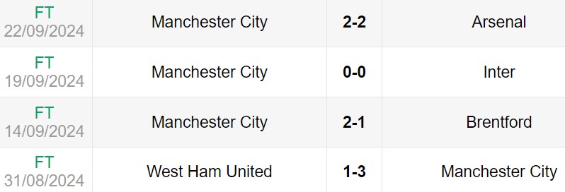 - Trong 19 lần gặp nhau gần nhất, Man City thắng 17 và hòa 2 với hiệu số bàn thắng bại là 64-10.