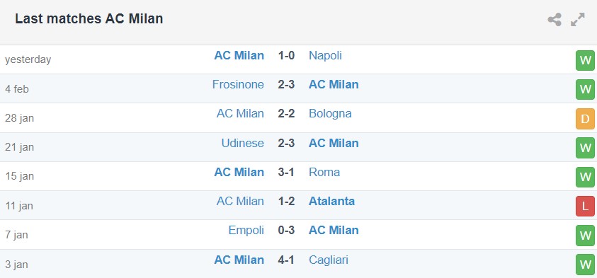 Phong độ gần đây của Milan vs Rennes