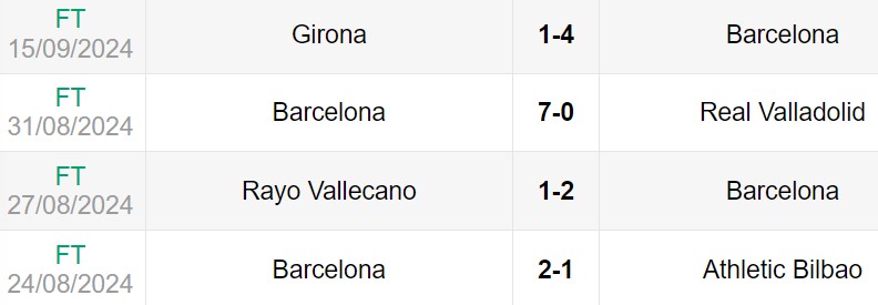 • Barcelona đang có chuỗi 4 trận toàn thắng trên sân khách.