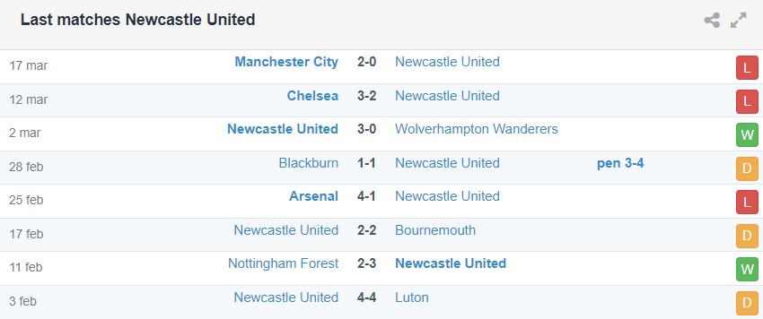 Trước khi nhường chỗ cho đợt tập trung đội tuyển quốc gia, Newcastle có phong độ tương đối thiếu ổn định khi chỉ thắng 3, hòa 2 và thua 3 ở 10 trận gần nhất trên mọi đấu trường. Chuỗi thành tích đi xuống này không chỉ khiến Newcastle bị loại khỏi FA Cup mà gần như chấm dứt giấc mơ dự Champions League mùa sau của họ khi mà khoảng cách với đội thứ 4 là Aston Villa đã lên đến 16 điểm dù thầy trò Eddie Howe đá ít hơn 1 trận.