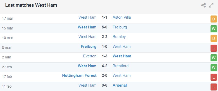 Về phía West Ham, đại diện thành London cũng chào đón sự trở lại của Kudus và Cornet. Tuy nhiên, Edson Alvarez sẽ ngồi ngoài trận này do đã tích lũy đủ 10 thẻ vàng.