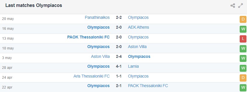 Phong độ gần đây của Olympiacos vs Fiorentina